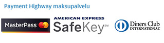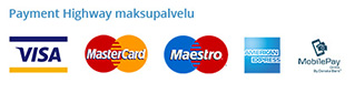 Hyväksymme maksut myös Payment Highway välityksellä. Korttimaksu Payment Highway, Visa-, Visa Debit-, Visa Electron-, MasterCard-, Debit MasterCard ja Maestro, American Express, tukee myös SafeKey®-pistemaksua, Diner Club, Danske Mobilpay -mobiililompakkomaksu, Masterpass-mobiililompakkomaksu, Nordean mobiililompakon kortteja käyttäen ilman, että sinun tarvitsisi luoda itsellesi Payment Highway maksupalvelun.